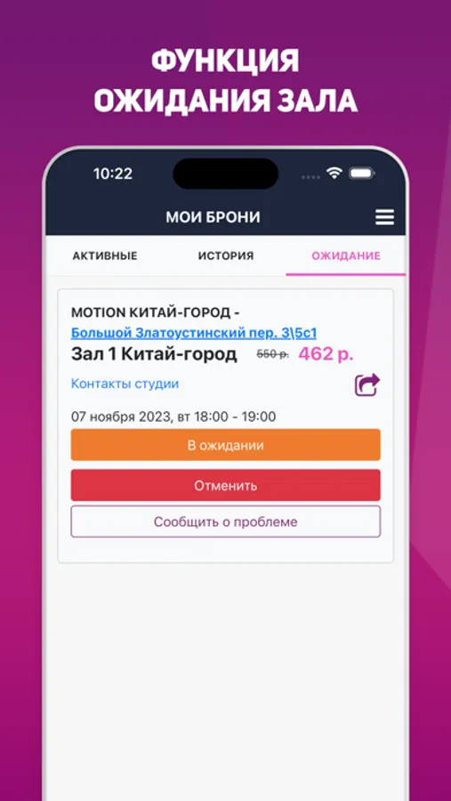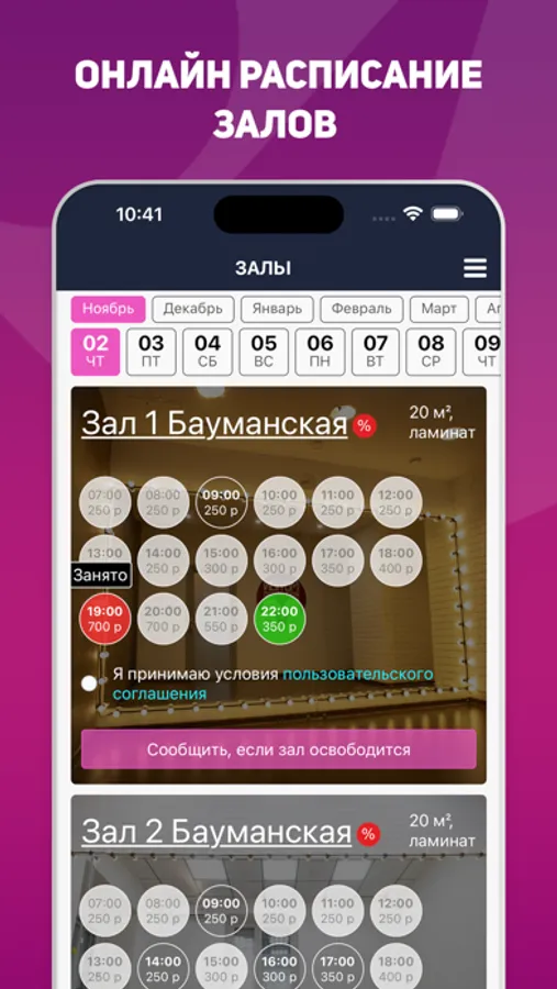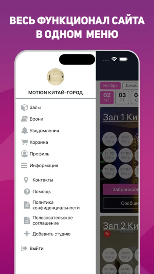 Бронирование зала проходит Клиентом самостоятельно через Сервис студии Motion в режиме онлайн.