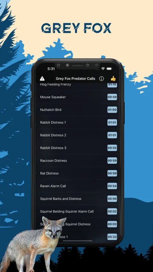 The sounds included are fox calls for hunting app, wildlife calls, animal calls, fox hunting calls, coyote& predator hunting calls, predator calls, predator pro, predator hunting pro, distress calls, varmint calls, coyote calls for hunting, coyote sounds, big game hunting calls.