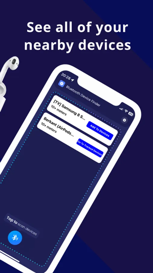 This app can help you find your lost AirPods, AirTag, Apple Pencil, iPhone, iPad, Apple Watch, Fitbit, Smartphone, Tablet, Smart Watch, Headphones or other Bluetooth devices.