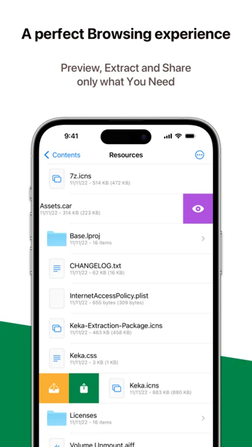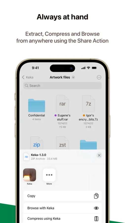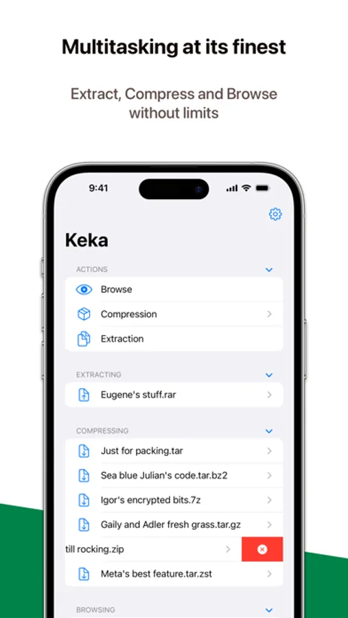 Keka can also browse and extract lots of compressed files, from ZIP and 7Z to RAR archives. Whether they are encrypted or encoded in with old charsets this is not a problem for Keka.