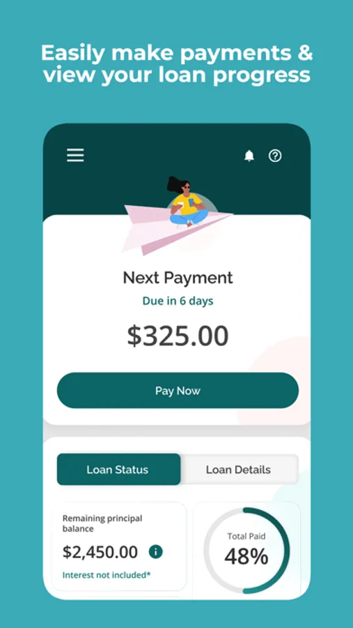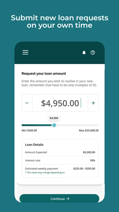 • Request a new loan and view estimated weekly payments