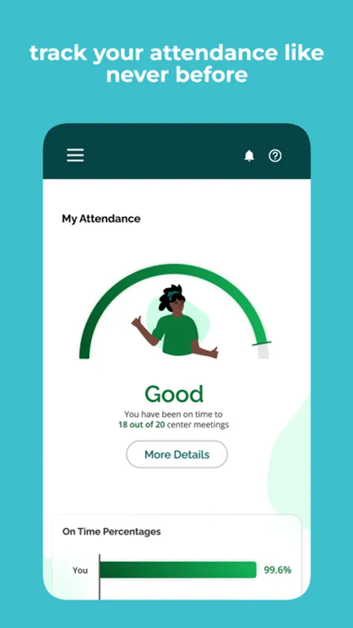 • Get reports on when you and your Center are on time, late, or absent from weekly Center meetings
