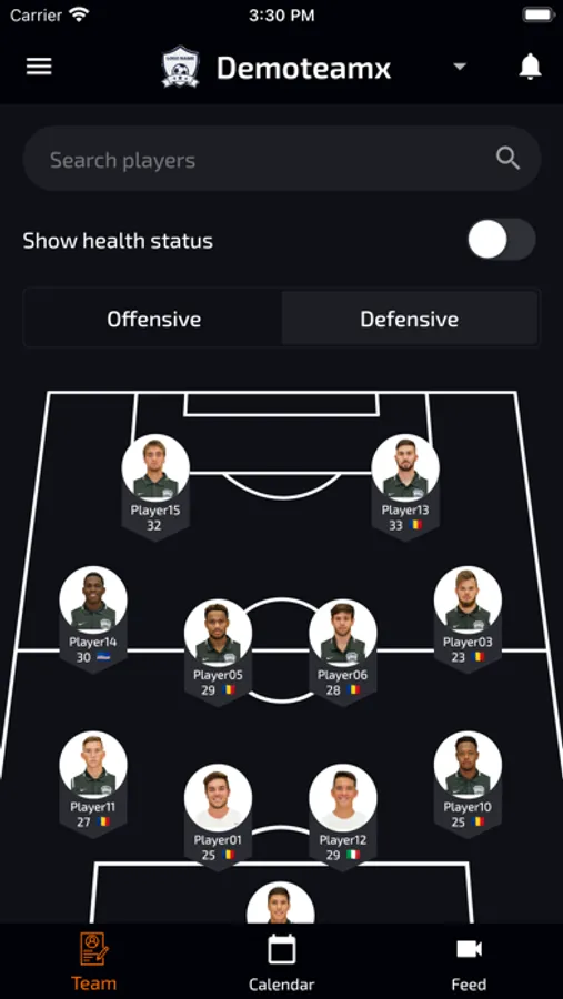 • Live medical and readiness data of the players
