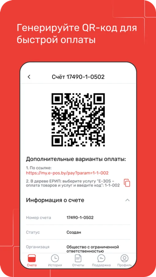 Выставляй счета, принимай платежи по QR-коду в своем телефоне через ЕРИП.