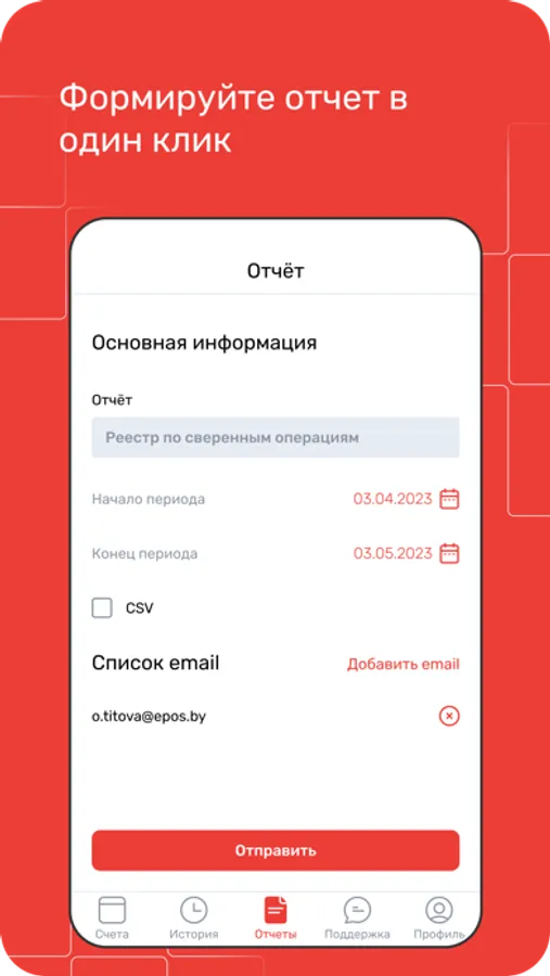 - Контроль финансов -отчеты по Реестр по сверенным операциям, Реестр по сверенным операциям с данными по клиентам, Ежемесячный акт на емейл.