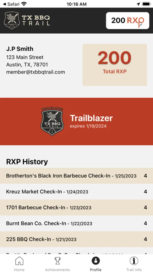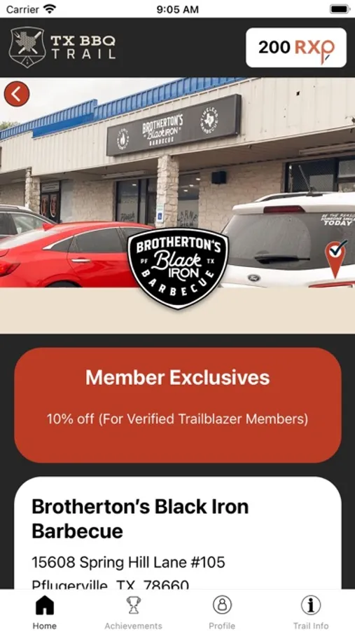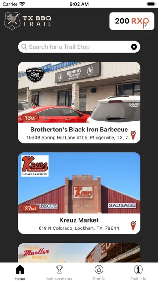 The TX BBQ Trail app puts you in control of your own TX BBQ pilgrimage. Hunt and find a TX BBQ Trail Stop location near you. Check-in near the register with the app, and earn RXP (real experience points) to help you level up on your journey. Become a paid Trailblazer member and earn double RXP for each visit and a 10%-25% discount on your order at every participating BBQ joint on the Trail. Be on the lookout for special events (i.e. BBQ festivals, pop-up events, classes etc...) where participating TX BBQ Trail Joints may be offering bonus offerings for Trailblazers who visit them off-site. Top Trailblazers will be offered exclusive access to unique BBQ experiences throughout the year. Then, at the end of the season, Three amazing grand prizes, hand-crafted by Cen-Tex Smokers in Luling, Texas, await the three most prolific Trailblazers of the season!