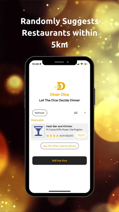 Diner dice recommends a restaurant or meal-takeaway spot within a radius of 5km every time you roll the dice