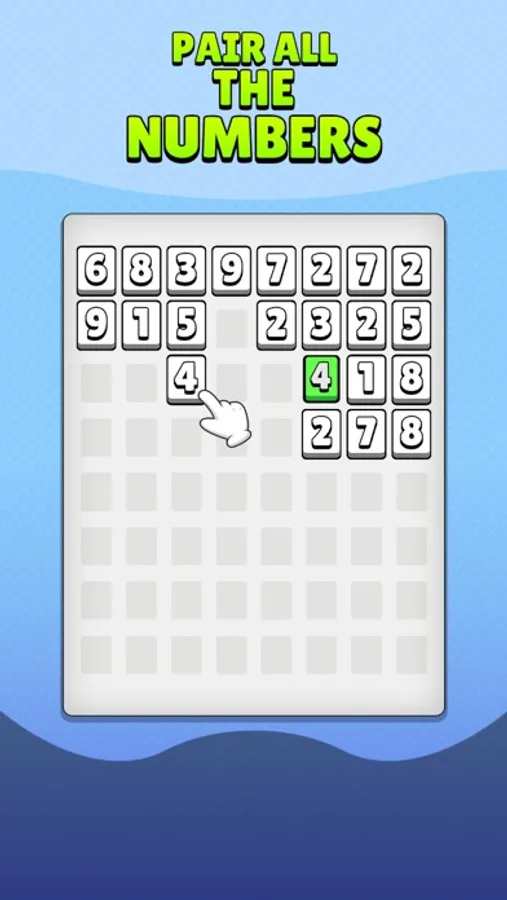 Find and cross out the pairs of the same numbers (4-4, 2-2, ...) or those which add up to 10 (2-8, 3-7, ...).