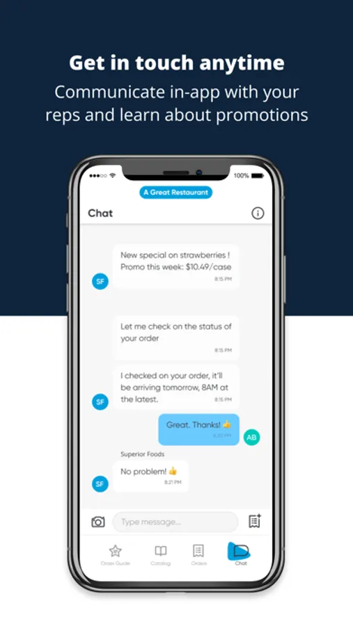 - Get in touch anytime: communicate directly with your Superior Foods rep in the app