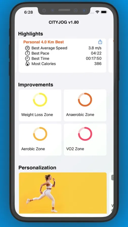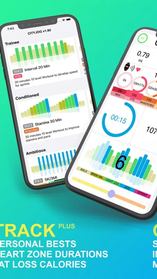 Each workout targets a specific heart exercise zone. Since zones are unique to you, CityJog will personalize these zones and track your progress with the most accurate information possible (Track Plus) , see below for more details).