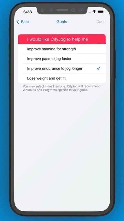 By learning about your goals, CityJog will recommend workouts and programs specific to your personal and fitness goals.