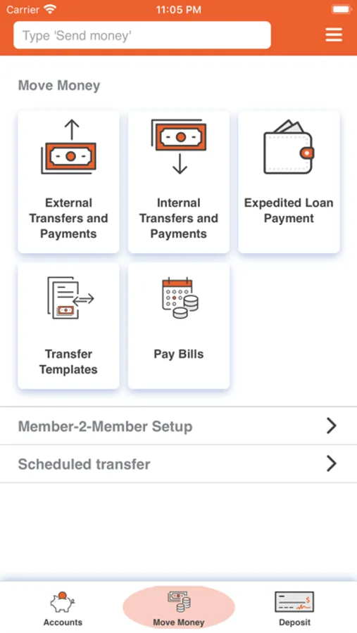 - Transfer: Transfer money between your accounts and loans, including cross member accounts or to and from your accounts at other financial institutions.