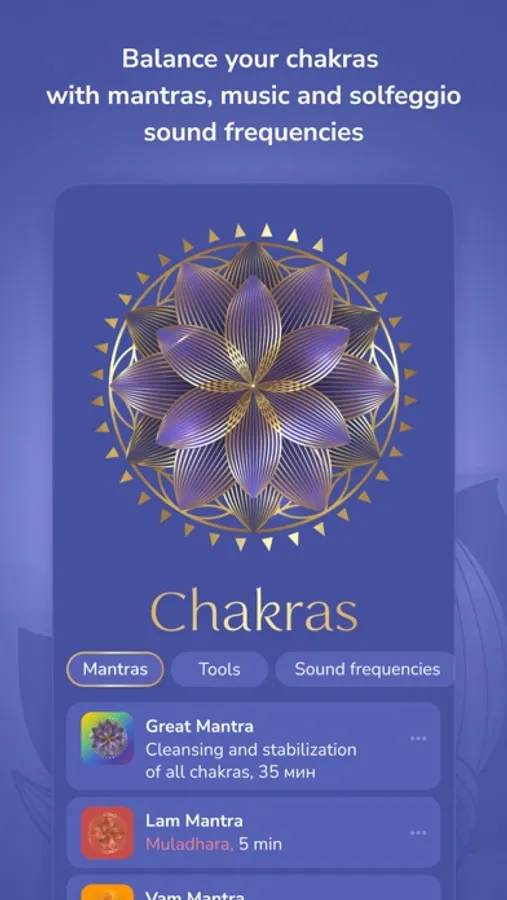 Meditations and spiritual practices for all occasions. To get rid of stress, to tune in to work or a date, to cope with sadness or to overcome insomnia - all this is Chakris!