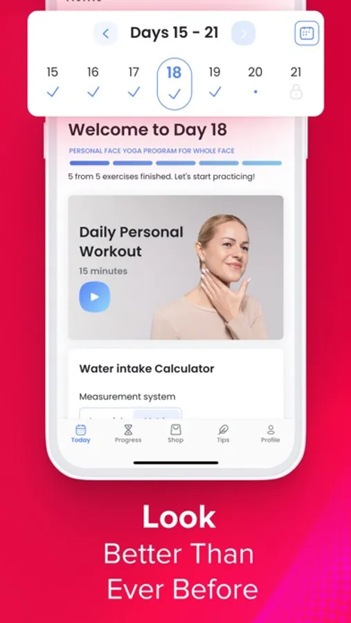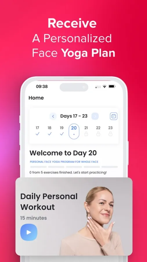 - Daily personalized Face Yoga™ workout consisting of 5 exercises tailored to your desired goal.