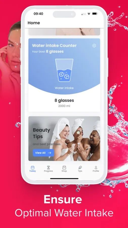 - Water intake calculator, designed to optimize your skincare inside and out.