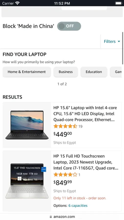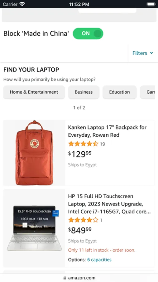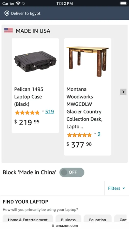 - Verified American Made products are in the top row. Below that section, users have the option to block all 'Made in China' products on the page.