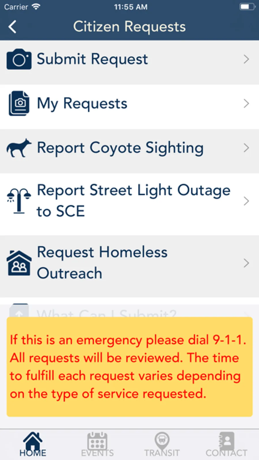 1. Submit a Citizen Request to alert staff of issues such as potholes that need fixing, coyote sightings, or street tree limbs down, and keep informed of the status of these requests.