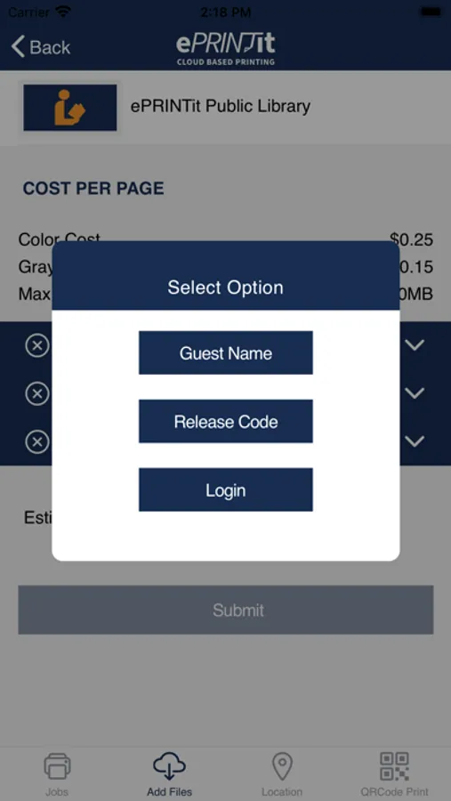 4. Go to your selected ePRINTit SaaS Print locations (store, hotel front desk, etc.), and the app will show you where to pick up or release your print job.