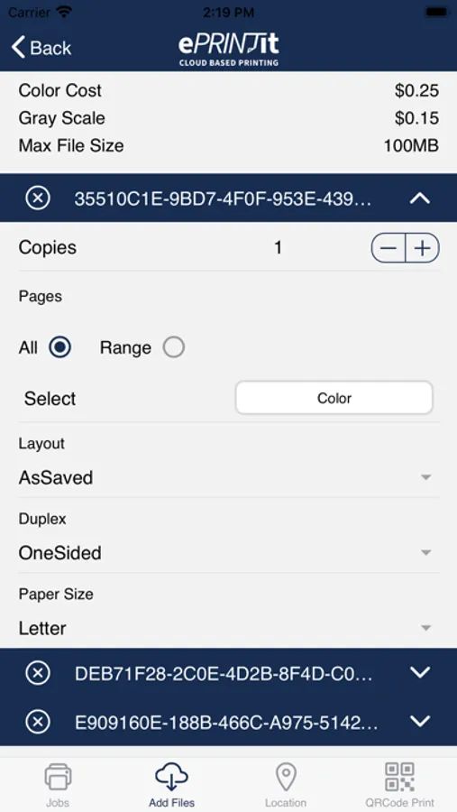 3. Tap Print. You should receive a print job identifier to release your print job at the printer