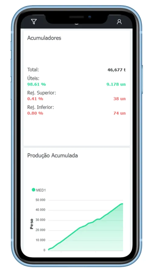 Produção Acumulada: exibe em forma de gráfico o registro de produção de cada máquina;