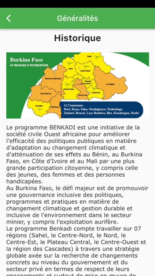 Le Programme Benkadi qui signifie en langue bambara (travailler ensemble dans la même direction) est une initiative de la société civile Ouest africaine pour améliorer l'efficacité des politiques publiques en matière d'adaptation au changement climatique et d'atténuation de ses effets au Bénin, au Burkina Faso, en Côte d'Ivoire et au Mali. Il bénéficie de l’accompagnement technique de Woord and Daad et un financement du Royaume des Pays-Bas à hauteur de 21 millions d’euros sur la période 2021-2025.