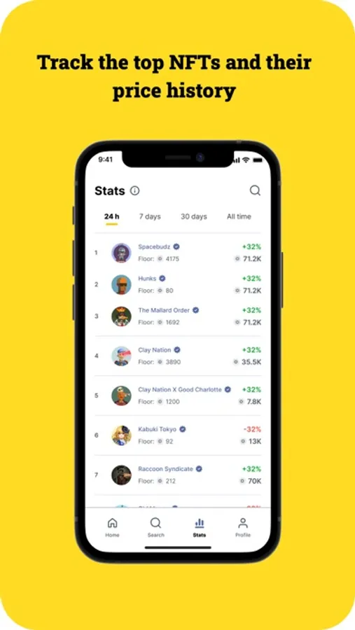 • View Stats and Pricing History: View the list of hot & trending collections and stats in different periods like 24 hours, 7 days, 30 days and all time.