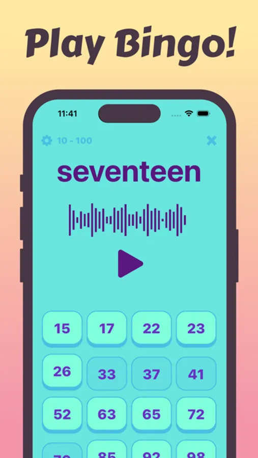 BINGO - listen as each number is called out and tap the right number on your bingo card