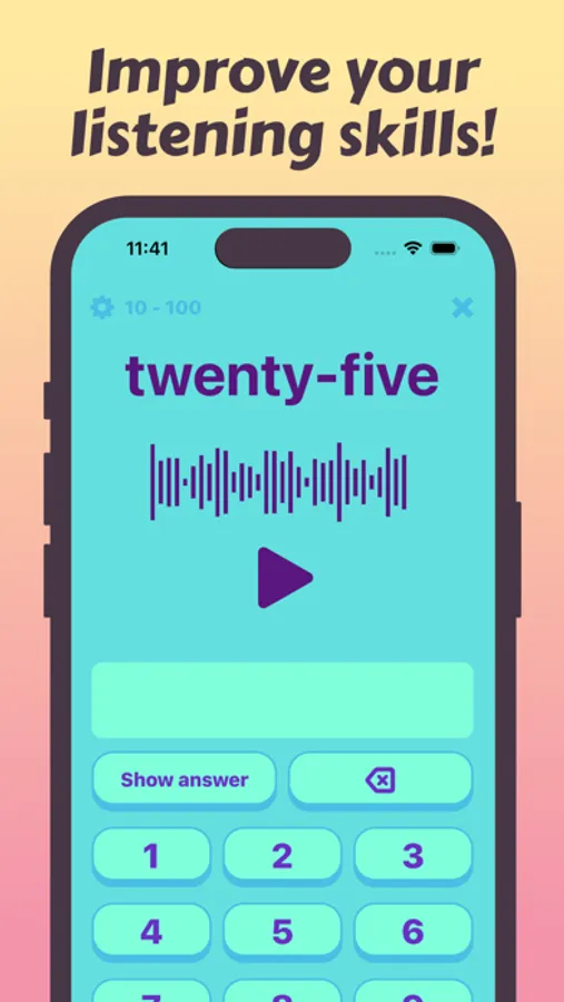 LISTENING - the app will say a number in English to you and it's your job to type it in