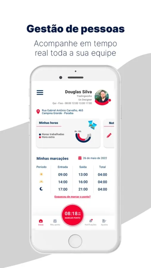 O app permite o uso compartilhado (mais de uma pessoa registrar o ponto no mesmo dispositivo), tem a opção de marcação de ponto com reconhecimento facial e possui lembrete de registro de ponto esquecido do dia anterior.