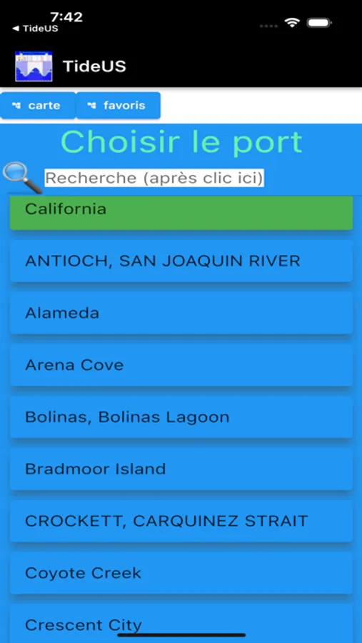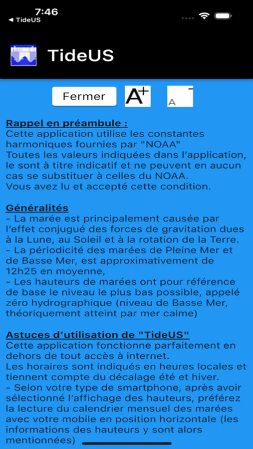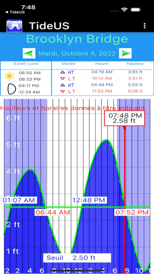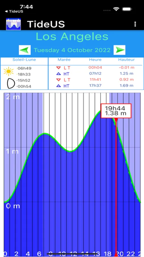 The menu is used to calculate the tides and to give specifics on a day or month.
