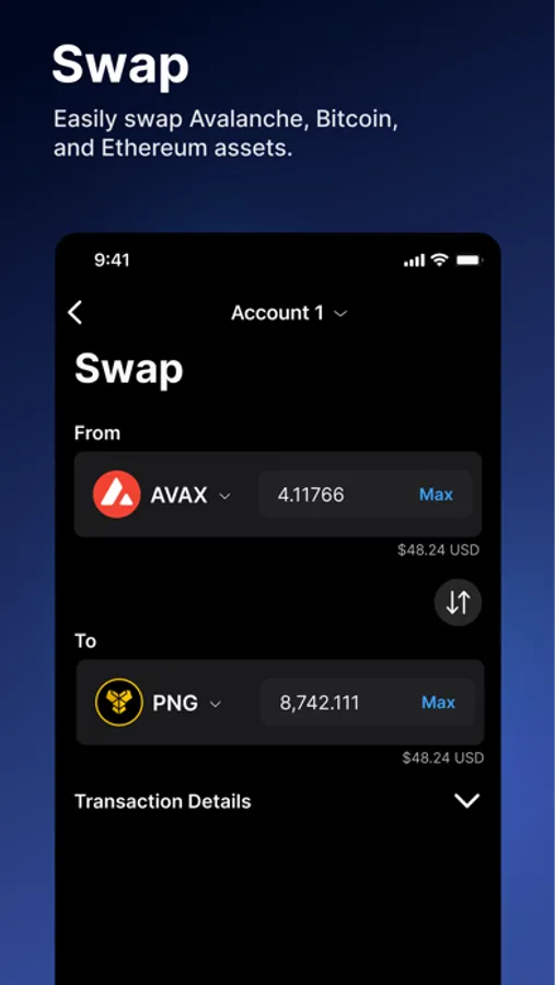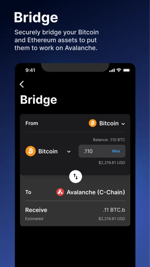 Easily swap Avalanche, Bitcoin, and Ethereum assets