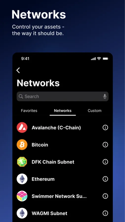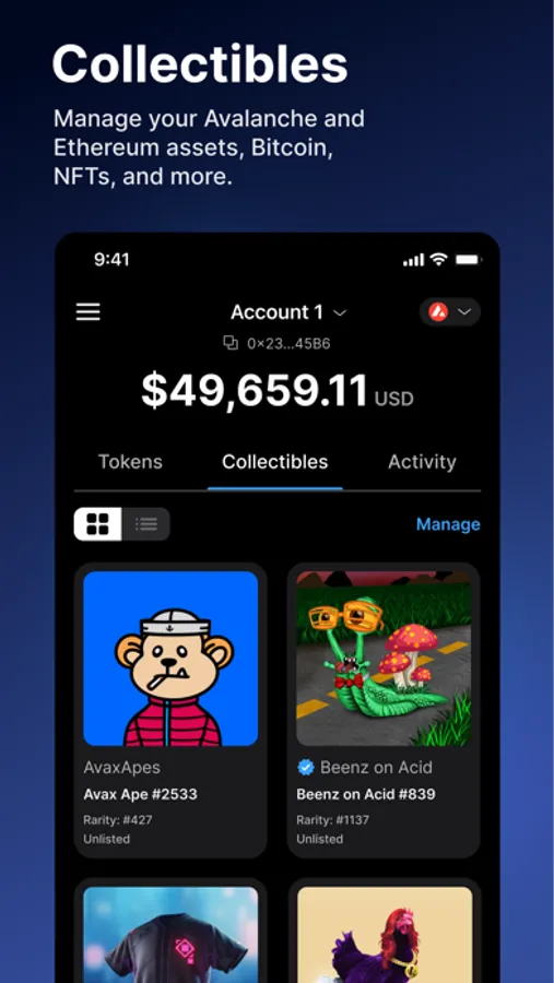 Manage your Avalanche and Ethereum assets, Bitcoin, NFTs, and more