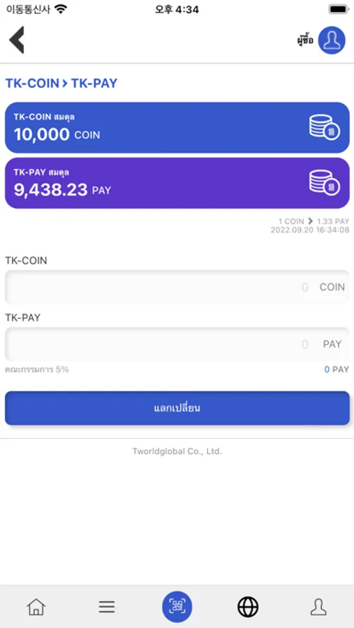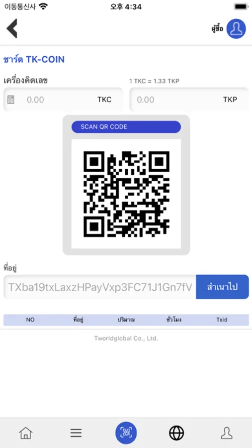 ลูกค้าสามารถเก็บ TK Coin ไว้เพื่อใช้ในธุรกรรม และสามารถตรวจสอบรายการธุรกรรมได้ทันทีทางระบบออนไลน์ และสามารถแลกเปลี่ยนหรือทำธุรกรรม TK Coin นี้ นอกจากนี้ ยังสามารถใช้ TK Coin เพื่อการซื้อสินค้าและบริการได้ผ่านทางระบบ Tworldglobal