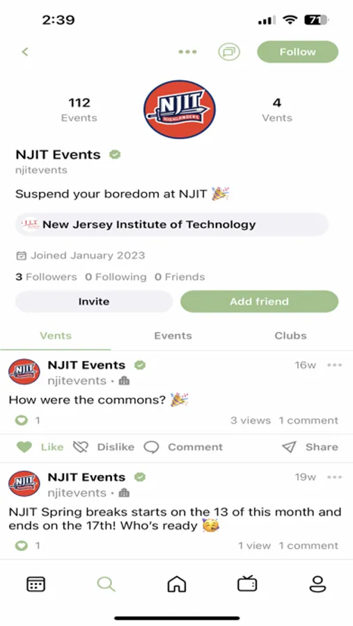 - Find local events at your school and post the fun you have at events with stories and vents.