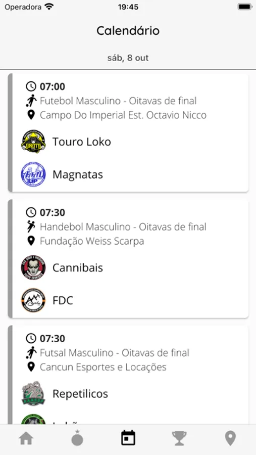 - Ver o calendário de jogos da competição, chaveamento das modalidades e classificações