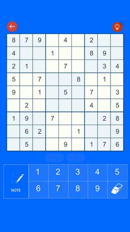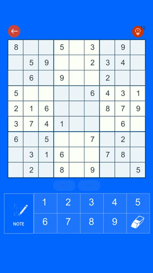This classic Sudoku is to fill a 9x9 grid with numbers so that each row, column and each 3x3 small nine grid section contains numbers between 1 and 9.
