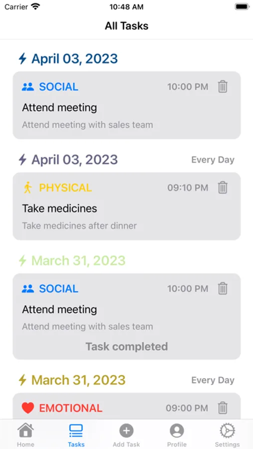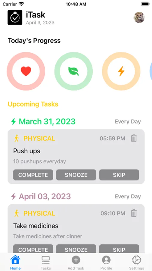 Create customized tasks and set reminders to help you build healthy habits for your health, social life, mental wellbeing, or physical fitness.