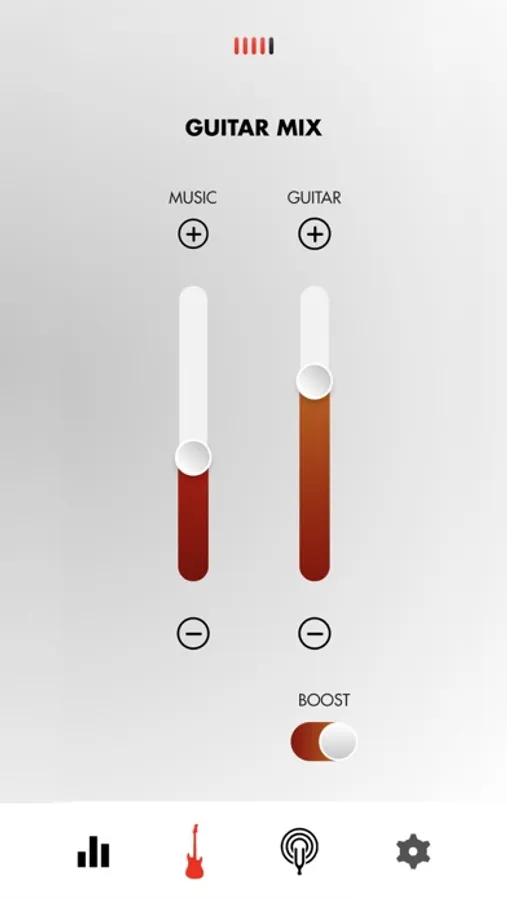 - Guitar Mix: Adjust the volume mix between your guitar and bluetooth playback.