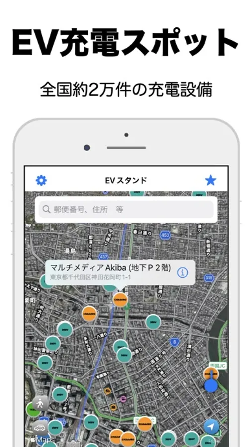 全国のEV充電スタンドをオフラインでも確認できるアプリです。