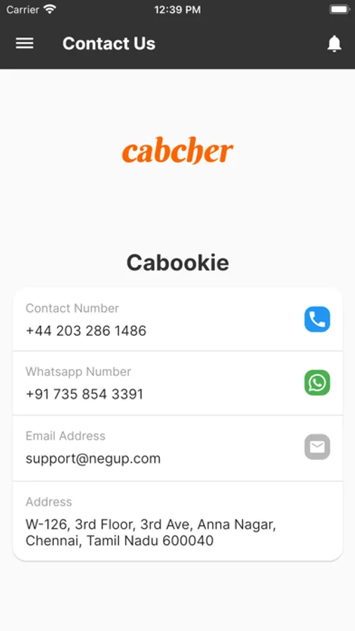 If you have any suggestions, feedback or concerns please write to us at support@cabcher.com and we will get back to you.