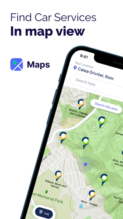 CarHome helps you find useful places on the map (gas stations, car washing stations etc.)