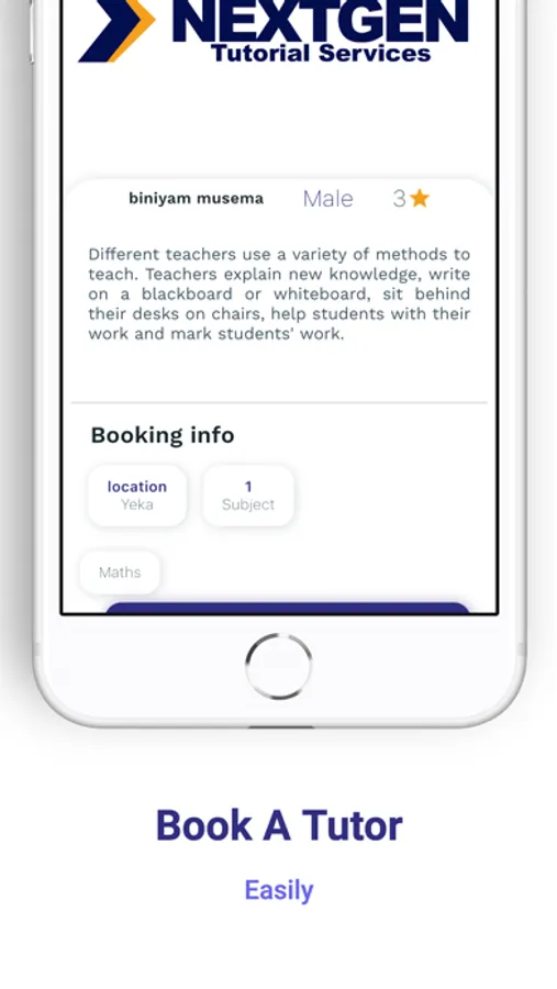The NEXTGEN Student app is fast and connects to a rich database of vetted tutors in Addis Ababa. Its robust filtering and screening algorithm allows you to find a pool of tutors in your neighborhood with a few clicks. Excellent tutorial service is guaranteed.