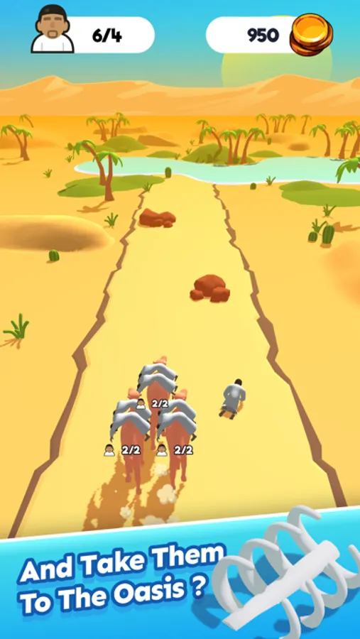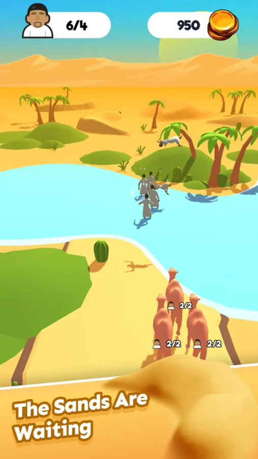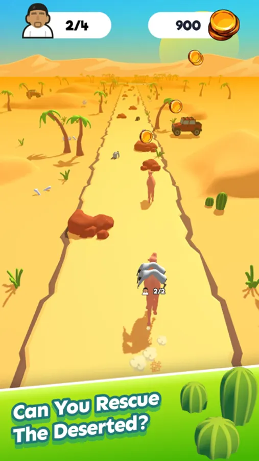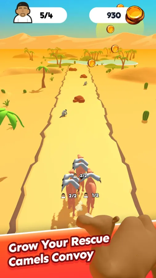 Welcome to the burning sands of the desert where many people got lost and your mission is to save them, get all the people on your trusty rescue camel's back and take them to the oasis, avoid all obstacles and collect more camels to add them to your rescue convoy, can you save all the deserted?!?