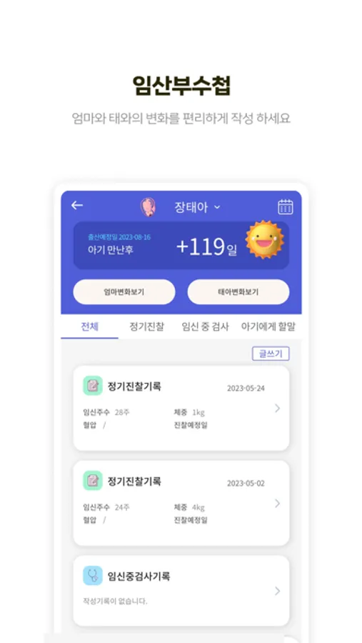 * 임산부 수첩 : 가입 및 로그인한 사용자에 한하여 임산부들이 자유롭게 작성할 수 있는 수첩 기능을 제공하는 서비스입니다.