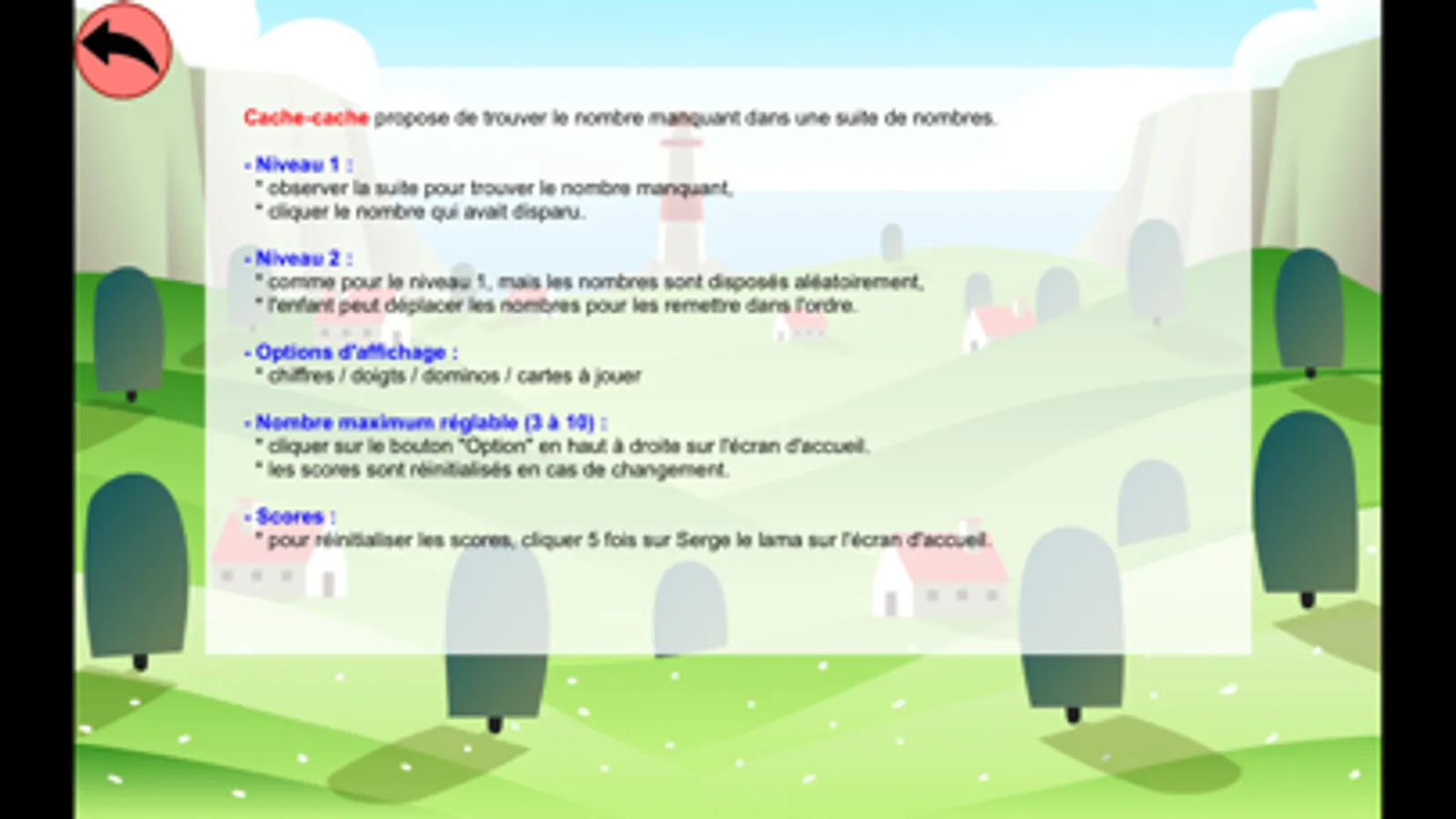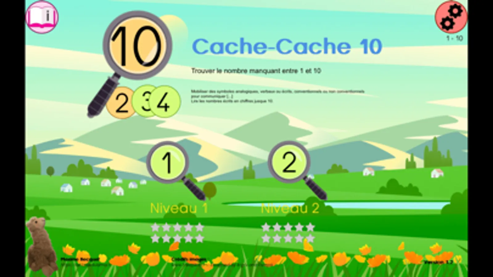Cache-cache propose d'observer la suite des nombres de 1 à 10 et de trouver le nombre manquant.
