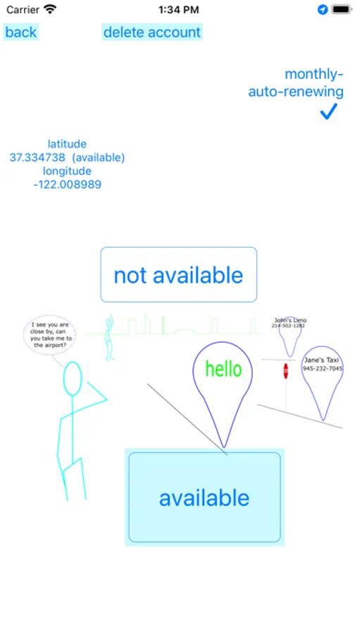 App is a 14.99 USD monthly auto-renewing subscription with account deletion, and restore capabilities.