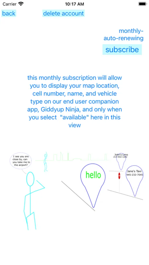 This app, Giddyup Driver, is a transportation advertising app. It is not transportation provider, yet advertises for such providers. However, this app does background checks and entity legal standing on all transportation providers it advertises for.