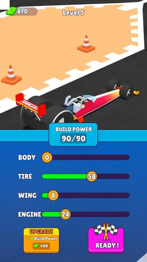 Don't forget to upgrade your car's body, tires, wing and engine to beat your opponents!