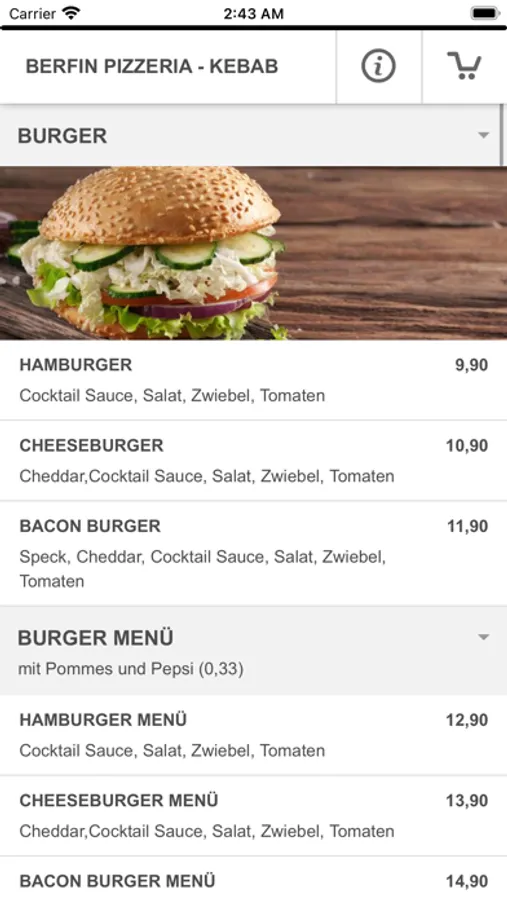 Order food from BERFIN. Order kebap, pizza, burgers and other hearty dishes. Thank you for using BERFIN APP.