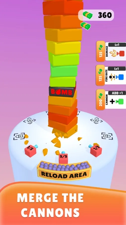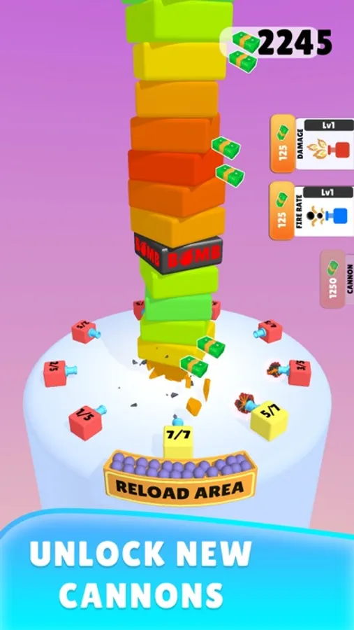 Upgrade your cannons, destroy the tower. Create your own cannon army!
